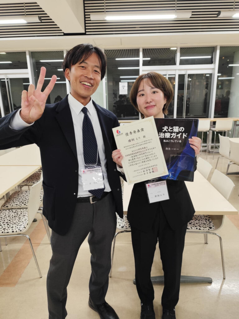 獣医学科6年生の猪飼えりさんが日本獣医臨床病理学会で優秀発表賞(一般演題・研究部門)を受賞しました