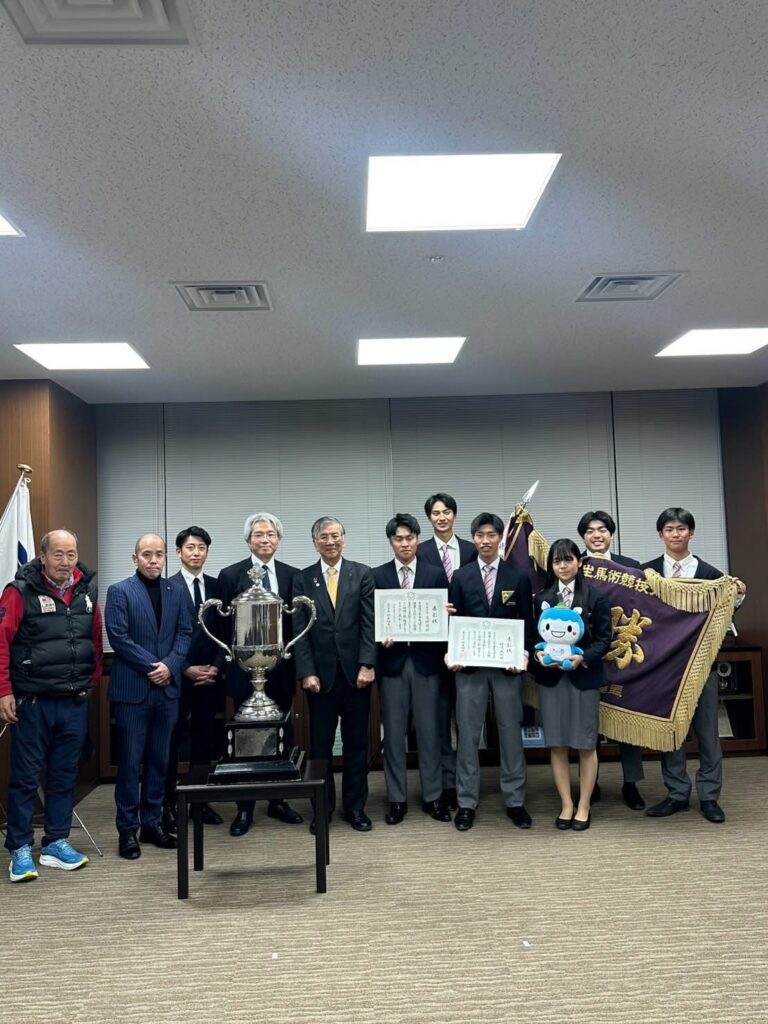 12月10日(水)に日本大学馬術部が藤沢市長を表敬訪問して全日本学生馬術大会総合15連覇の競技成績を報告しました