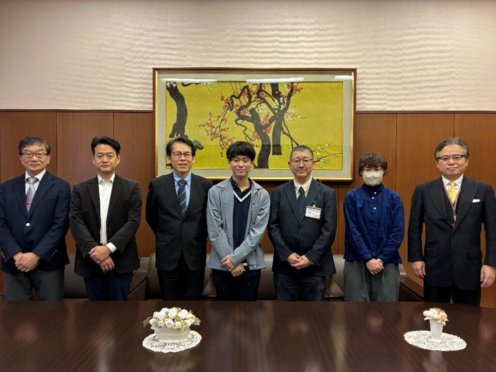 2025年11月15日から26日まで開催された「東京2025デフリンピック」。水泳競技の日本代表として出場したアグリサイエンス学科2年の荒川輝久(あらかわ てるひさ)さんが、12月24日、大会の結果報告のため学部長を表敬訪問しました。