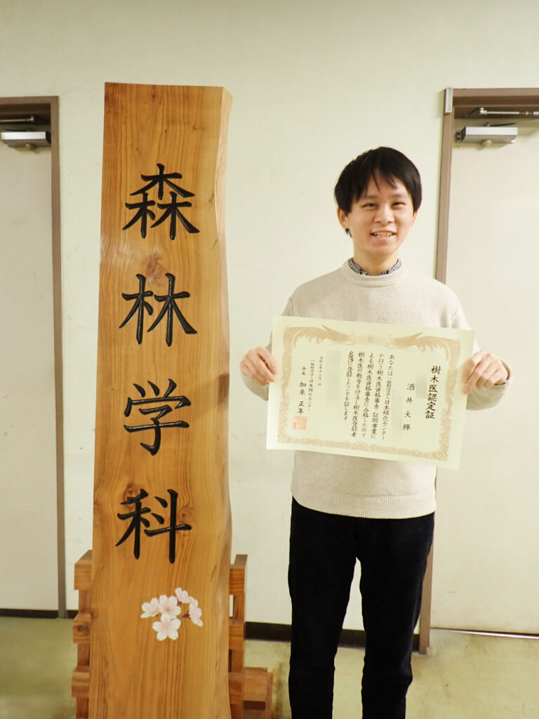 生物資源大学院生物環境科学専攻博士課程の酒井大輝さんが樹木医試験に合格しました