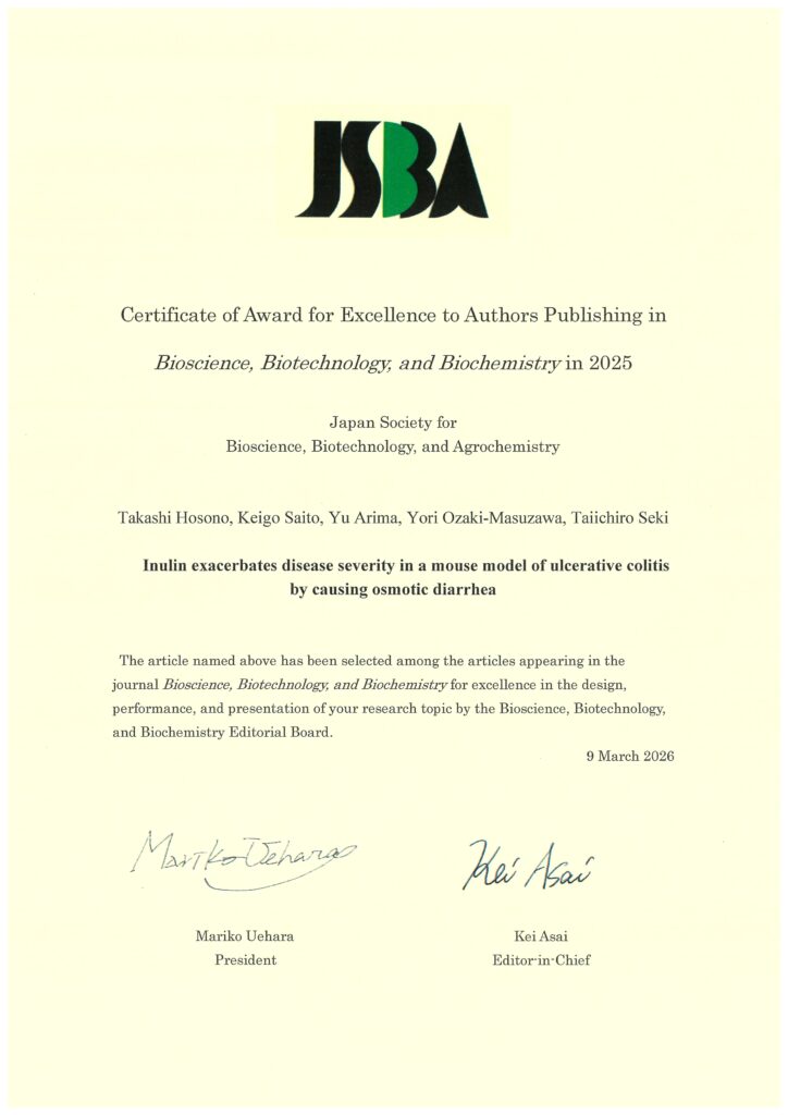 ・掲載詳細: Bioscience, Biotechnology, and Biochemistry, 2025, 89, 776–786