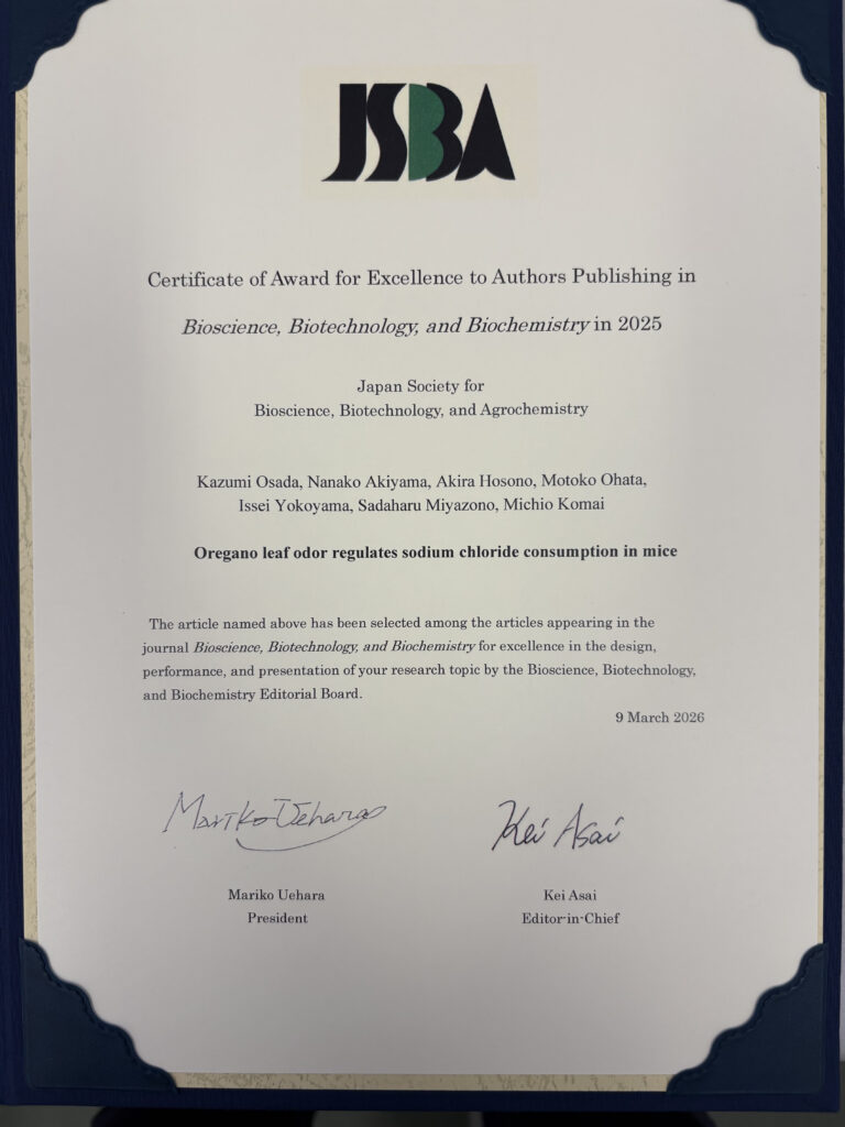 日本農芸化学会が刊行する国際誌Bioscience, Biotechnology, and Biochemistry (BBB)において、本学部のバイオサイエンス学科および食品開発学科の研究グループによる2つの論文が、2025年 BBB論文賞(BBB Article Award)を受賞いたしました 。